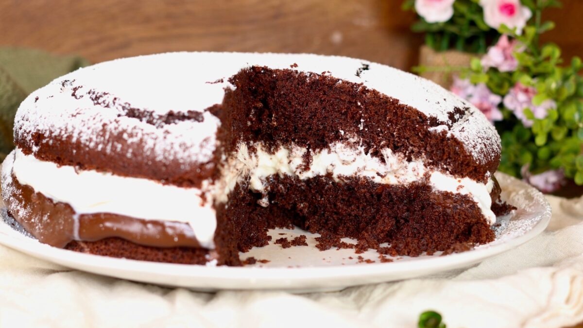 Scopri la ricetta soffice della Torta Moretta con panna e crema spalmabile: base al cioccolato umida, facile da preparare. Perfetta per compleanni e merende golose!